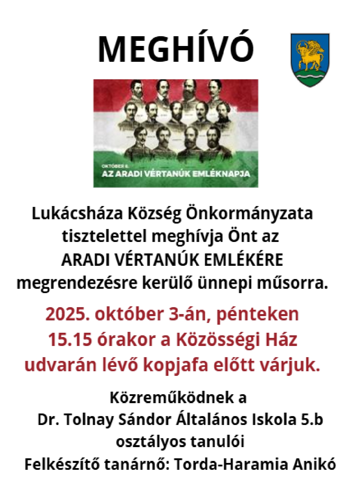 / MEGHÍVÓ, AZ ARADI VÉRTANÚK MEGEMLÉKEZÉSÉRE